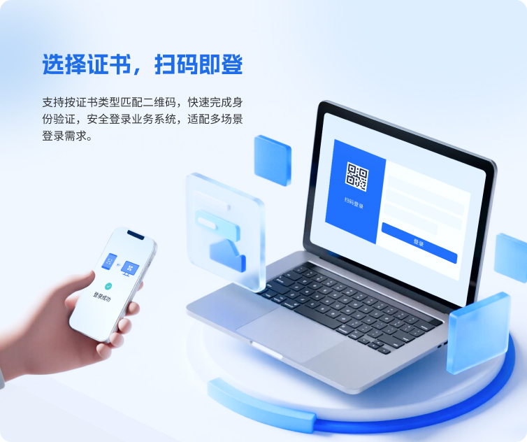 支持按证书类型匹配二维码,快速完成身份验证,安全登录业务系统,适配多场景登录需求。